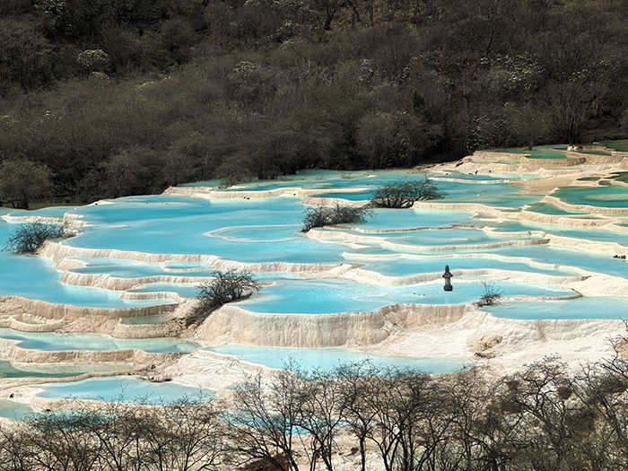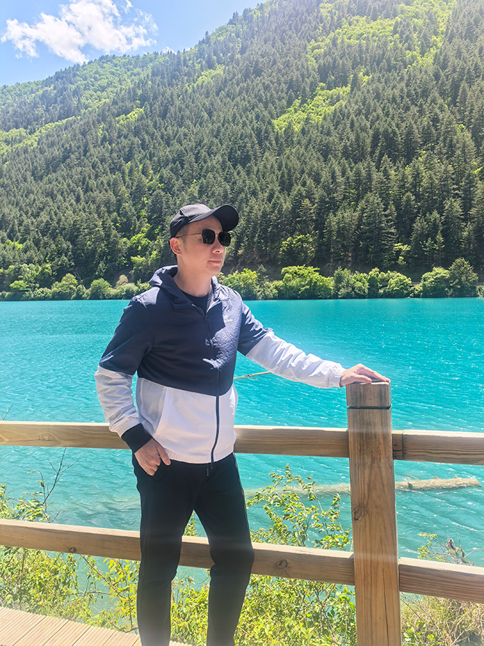 從成都乘動車前往黃龍,我們與父母攜手登臨海拔3578米的“人間瑤池”。鈣化池如翡翠鑲嵌雪山之間,棧道上,父母雖步履稍緩,卻始終與我們并肩而行。