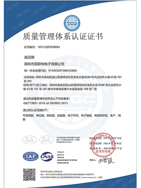 質量管理體系認證證書