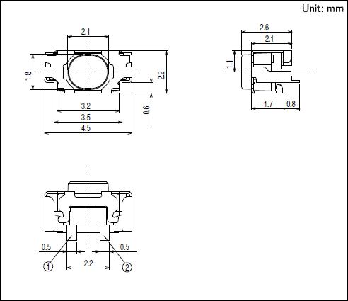 SKSL系列輕觸開關屬于基板表面安裝高度為1.6mm的半貼裝式。。廣泛應用于PC及外圍設備、手機及外圍設備、可穿戴型終端;